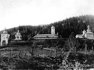 Această mănăstire fortificată a suferit stricăciuni imediat dupa moartea ctitorului ei. Domnitorul Ioan Vodă cel Cumplit (1572-1574) a spoliat mănăstirea de odoarele sale, folosind o parte din argintărie ca să bată monedă.[8] Din cauză că s-a opus, starețul Iacob Molodeț a fost îngropat de viu.[9]