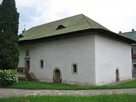 Între biserică și curtina de sud se află fosta reședință voievodală a domnitorului construită în anul 1561. Clădirea era inițial mult mai spațioasă, având fațada principală cu o lungime de 40 m. După Revoluția din 1821 au fost dărâmate încăperile și beciurile de pe latura estică, lungimea clădirii reducându-se la jumătate. Ruinele de fundații ale încăperilor dărâmate au fost scoase la iveală de săpăturile arheologice din a doua jumătate a secolului al XX-lea.[9] Tot atunci au fost modificate tavanele încăperilor și acoperișul. În această clădire a fost amenajată trapeza mănăstirii.