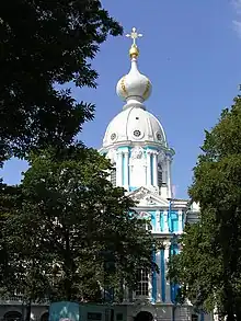 Biserica principală a mănăstirii (biserica mare), o clădire alb-albastră, este considerată a fi una dintre capodoperele arhitecturale ale arhitectului italian Francesco Bartolomeo Rastrelli, care a reproiectat, de asemenea, Palatul de Iarnă și a conceput planurile Palatului Ecaterinei (Ekaterininski) de la Țarskoe Selo (Pușkin), ale Palatului Mare de la Peterhof și ale multor altor clădiri importante din St. Petersburg. [3]