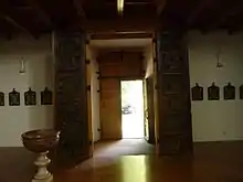 Cele zece familiare reliefuri care decorează ușa de stejar a bisericii abației, și au fost fabricate în 1450 sunt, probabil, de la romanic catedrala veche.