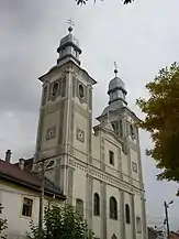Călugării franciscani s-au stabilit în oraș în anul 1705. Între 1713 și 1779 au construit biserica și mănăstirea din centrul orașului. Biserica, cea mai veche a Pieței Principale, se află în partea de jos a pieței, pe colțul străzii Cetății. Edificiul cu două turnuri, cunoscut sub numele de biserica călugărilor, îmbină elementele perioadei de tranziție dintre baroc și clasicism. Are o lungime de 36 m, lățimea de 17 m și înălțimea de 14 m. Patrimoniul mobil format din șapte altare și o orgă cu o vechime de circa 200 de ani este deosebit de valoros. În turnul estic se află două clopote.[2]