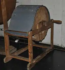 Mașina de vânt este un instrument alcătuit dintr-un cilindru rotativ orizontal de lemn prevăzut cu șipci montate pe generatoarea cilindrului, care antrenat de o manivelă acționată manual freacă o bucată de țesătură din tafta sau alte materiale textile similare, întinsă pe un stativ de lemn ca o centură în jurul cilindrului, făcând-o să vibreze. În funcție de viteza de rotație a cilindrului, se obțin sunete asemănătoare rafalelor de vânt, cu înălțimi și intensități variabile.