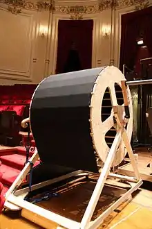 În orchestră, mașina de vânt face parte din instrumentele de percuție și, prin urmare este mânuită de percuționiști.