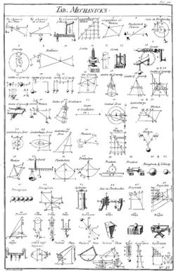 - Chambers, Ephraim (), „Table of Mechanicks”, Cyclopædia, A Useful Dictionary of Arts and Sciences, London, England, Volume 2, p. 528, Plate 11.