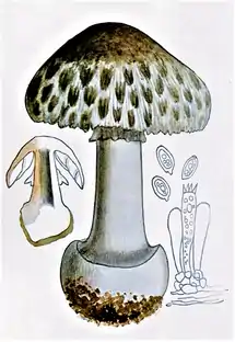 - Caracteristici microscopice: are spori elipsoidali, hialini (translucizi), cu un por de germen și au o mărime de 10–15 × 6–7,5 microni. Pulberea lor este albă.[6][7]