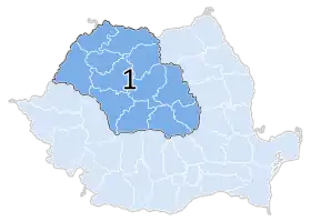 Macroregiunea 1 este o mărime statistică, fără personalitate juridică, formată din două regiuni de dezvoltare, de asemenea fără personalitate juridică: Regiunea de dezvoltare Nord-Vest și Regiunea de dezvoltare Centru. Este alcătuită din următoarele județe: Alba, Bihor, Bistrița-Năsăud, Brașov, Cluj, Covasna, Harghita, Maramureș, Mureș, Satu Mare, Sălaj și Sibiu.