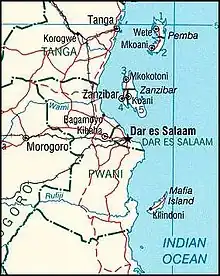 Așezarea geografică a insulei Mafia.