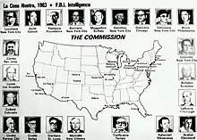 ![]() Un grafic al FBI cu șefii tuturor familiilor care formează mafia americană (1963) | |