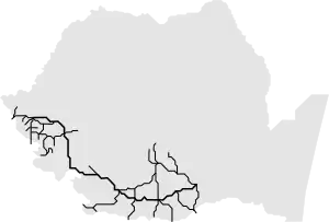 | București (nord) - Roșiori (nord) - Craiova - Filiași - Caransebeș - Timișoara (nord) | 533 km | 101 102 103 104 105 106 107 108 109 110 112 113 114 115 116 117 118 119 120 121 122 123 124 125 126 127 128 | |||