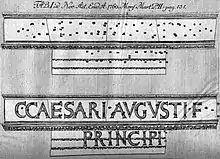 - Reconstituirea lui Séguier a fost publicată în CIL (Corpus Inscriptionum Latinarum), xii.