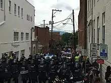 Poliția statală a declarat prin intermediul megafoanelor[136] cu câteva minute înainte de începerea activităților că adunarea este ilegală și au evacuat zona.[147] Ca urmare a acestei acțiuni „un număr de aproape 100 de protestatari de extremă-dreapta” s-au deplasat spre Parcul McIntire la 3km depărtare. Aici au avut loc o serie de discursuri programate pentru evenimentul „Unite the Right”.[147][136]