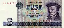 Bancnotă est-germană cu valoarea nominală de 5 mărci (1975)
