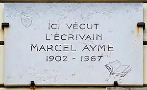 În semn de omagiu, în cartierul Montmartre, municipalitatea pariziană a denumit o piațetă cu numele său. În Place Marcel Aymé a fost amplasată o placă memorială și a fost dezvelit un monument în 1989, o statuie evocând personajul din celebra sa carte Omul care trece prin zid.