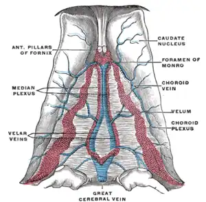 ![]() Velum interpositum (Marea venă cerebrală localizată în centru jos) | |