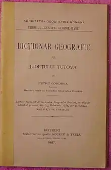 Marele dicționar geografic al României este o lucrare alcătuită și prelucrată după dicționarele parțiale pe județe (București, 1898-1902, 5 volume), lucrare realizată de George Ioan Lahovari, C. I. Brătianu și Grigore Tocilescu.