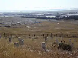 ![]() Ultima redută a lui Custer la Little Bighorn în Rezervația Indiană Crow. | |||||||