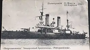 Politica japoneză de așezare a minelor a fost eficientă în limitarea mișcărilor navelor rusești în afara Port Arthur, când, la 12 aprilie 1904, două cuirasate rusești; nava amiral Petropavlovsk, și Pobeda au intrat într-un câmp minat japonez de lângă Port Arthur, ambele nave s-au lovit de mine.[13] Petropavlovsk s-a scufundat într-o oră, în timp ce Pobeda a trebuit să fie remorcat înapoi în Port Arthur pentru reparații ample. Makarov a murit pe Petropavlovsk.