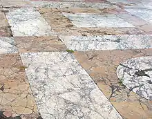 Marmură galbenă antică în reconstituirea un paviment din opus sectile de la Palatin, Roma