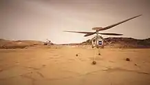 - MHS (Mars Helicopter Scout) este un elicopter-dronă alimentat cu energie solară, cu o masă de 1,8 kg, care este testat pentru stabilitatea zborului și pentru potențialul său de a cerceta cel mai bun traseu pentru rover.[47] Micul elicopter este așteptat să zboare de până la cinci ori în timpul testării de 30 de zile și nu va zbura mai mult de 3 minute pe zi. Este un demonstrator tehnologic care va forma baza pe care se pot dezvolta elicoptere mai capabile pentru explorarea aeriana a planetei Marte și a altor obiective planetare cu o atmosferă.[48][49]