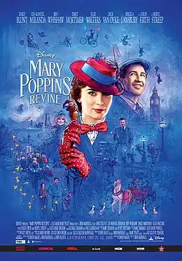 Mary Poppins Revine este un film musical de fantezie din anul 2018 regizat de Rob Marshall, scenariul aparținându-i deopotrivă lui David Magee după povestea lui Magee, Marshall, și John DeLuca. Bazat pe cartea pentru copii care a revoluționat lumea clasicelor secolului trecut Mary Poppins scrisă de P. L. Travers, filmul este continuarea filmului de la Disney din anul 1964, având ca protagoniști pe Emily Blunt în rolul lui Mary Poppins, cu Lin-Manuel Miranda, Ben Whishaw, Emily Mortimer, Julie Walters, Dick Van Dyke, Angela Lansbury, Colin Firth, șiMeryl Streep in supporting roles. Plasat în atmosfera londoneză a anului 1930, la 24 de ani după întâmplările din filmul original, pelicula o readuce pe Mary Poppins, iubita dădacă a copiilor Banks, ce revine în familie pentru a o sprijini ca urmare a unui eveniment tragic care îi copleșește.