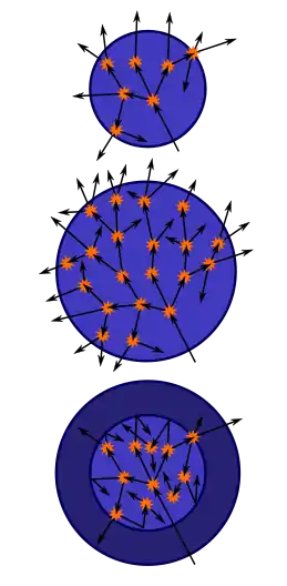 Jos - Înconjurarea sferei originale a materialului fisionabil cu o substanță care reflectă neutronii mărește eficiența reacției și permite transformarea sa într-una auto-întreținută.