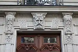 Mascaron pe un oculus, deasupra unei uși Art Nouveau din Strasbourg