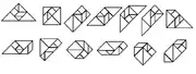 Legat de Tangram s-a pus întrebarea: Câte figuri convexe pot fi realizate cu ajutorul celor 7 piese? Una este pătratul de plecare, alte 12 sunt prezentate în figura alăturată. Abia în 1942 s-a demonstrat că numai aceste figuri convexe pot fi realizate folosind regulile menționate mai sus, demonstrația fiind făcută de matematicienii Fu Traing Wang și Chuan Chih Hsing, de la Universitatea Națională din Chekiang, China.