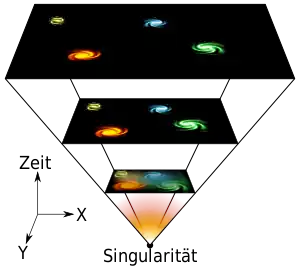 Starea inițială a universului (engl. Big Bang = explozia cea mare) s-a format după teoriile mai noi materie, spațiu și timp.