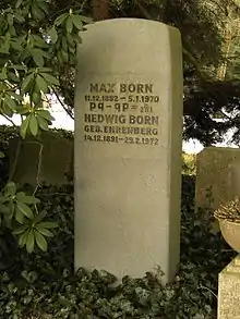 Max Born (n. , Breslau, Regatul Prusiei, Imperiul German – d. , Göttingen, RFG) a fost un fizician și matematician german care a contribuit la dezvoltarea mecanicii cuantice. El a adus contribuții și în fizica solidului și în optică și a îndrumat activitatea unui număr remarcabil de fizicieni din deceniile anilor 1920 și 1930. Born a primit Premiul Nobel pentru Fizică în 1954 pentru „cercetarea fundamentală în mecanica cuantică, în special în interpretarea statistică a funcției de undă”.[33][34][35][36]