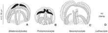 Cleme aparținând diferitor genuri ale familiei Protomicrocotylidae. Negru: sclerit suplimentar, caracteristic ordinului Mazocraeidea