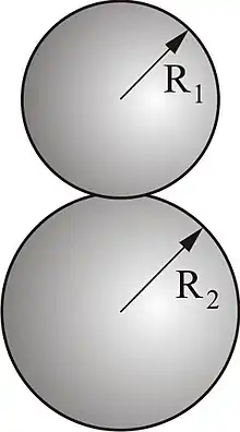 Pentru două sfere de razele și ecuațiile de mai sus își mențin valabilitatea, iar raza se obține prin: