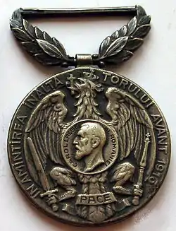 | Decorația inferioară | Crucea Comemorativă a Războiului 1916-1918 |