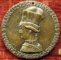 Medalia lui Francesco Sforza a fost realizată din bronz de către artistul italian Pisanello prin anul 1442 și are diametrul de 8,8 cm.