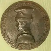 Între primii care l-au solicitat a fost ducele de Mantova, Gianfrancesco I Gonzaga, la putere din 1433. Lucrarea i-a fost solicitată în 1439-1440, când Pisanello se afla la Mantova și participa la asediul Veronei, în suita lui Gonzaga și a condotierului[1] Niccolò Piccinino, căruia i-a dedicat și lui o medalie. Medalia lui Niccolò Piccinino are dimensiuni ceva mai reduse.