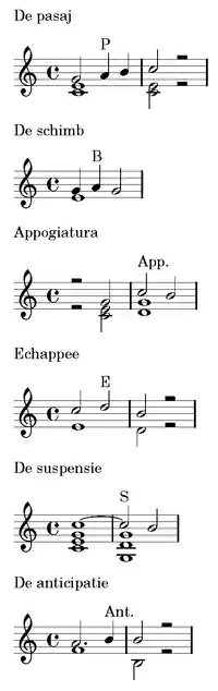 Notele unei melodii care nu sunt consonante cu vocile joase pot fi: