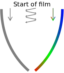 Există o tranziție lină de la secvența alb-negru 22 la secvența de culoare A, care are loc în timpul apariției unei fotografii Polaroid.