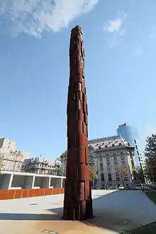 Coloana memorială, numită și coloana amintirilor, are o înălțime de 17 m, diametrul ei variind între 1.40 m și 1.55 m. Este turnată în fontă, iar modulii ruginiți sunt înșiruiti pe un pilon central.[7] Are o greutate de 18 tone.[8]