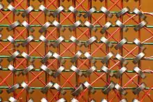 Inelele de ferită sunt dispuse într-un plan (o matrice rectangulară, nu neapărat pătrată), iar prin ele trec firele de selecție X și Y, cel de citire S, și, la începuturi, și firele de inhibare Z. Materialul din care sunt făcute trebuie să aibă o remanență magnetică (en) înaltă, capacitatea de a-și păstra starea de magnetizare și o coercivitate mică, ca energia de schimbare a sensului magnetizării să fie mică.