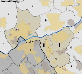 Comuna actuală Menen a fost formată în urma unei reorganizări teritoriale în anul 1977, prin înglobarea într-o singură entitate a ??? comune învecinate. Suprafața totală a comunei este de 33,07 km². Comuna este subdivizată în secțiuni, ce corespund aproximativ cu fostele comune de dinainte de 1977. Acestea sunt: