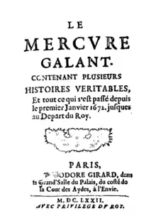 Mercure galant a fost fondat de scriitorul Jean Donneau de Visé în 1672. Numele se referă la zeul Mercur, mesagerul zeilor; titlul făcea trimitere, de asemenea, la Mercure françoys care a fost prima revistă literară a Franței, fondată în anul 1611 de către librarul parizian J. Richer.