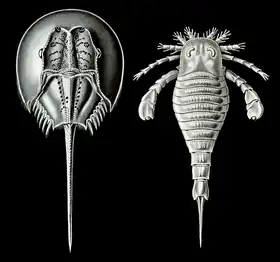Merostomata include organisme, ce fac parte din grup străvechi de organisme. Crabii-potcoavă reprezintă unicul grup din această clasă, care nu a dispărut. Ei sunt numiți așa, din cauza morfologiei externe asemănătoare unui crab adevărat.