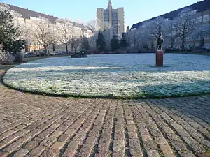 ![]() Statuia Annei Frank în Merwedeplein. În fundal se află clădirea Wolkenkrabber. | |