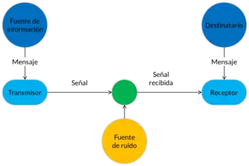 Schemă simplificată a factorilor de comunicare elaborată de Claude Shannon în teoria informației.