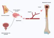 Metastazele reprezintă diseminări ale celulelor maligne de la tumora primară către alte structuri ale organismului, care oferă condiții de multiplicare progresivă și invadare tumorală (“micromediu” propice, factori de creștere). Metastazele mai sunt numite și tumori secundare.[3]
