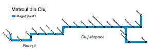 Metroul din Cluj este o rețea de metrou propusă a fi realizată în județul Cluj, în orașul Cluj-Napoca și comuna Florești. Dacă va fi realizată, aceasta va fi a doua rețea de metrou din România, după metroul din București. În prezent, proiectul include o linie de aproximativ 21 de km, 19 stații subterane, un depou subteran, iar costul este de peste 2 miliarde de euro. Durata de execuție estimată este de 128 de luni.[3] În decembrie 2022, a fost semnat de către Ministerul Transporturilor contractul de finanțare pentru acest metrou, în valoare de peste 13 miliarde de lei, iar prima etapă trebuie să fie finalizată până în 2026.[4] Planificarea actuală are ca posibilă dată de finalizare pentru întregul proiect anul 2031.