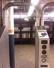 Pasagerii intră în stația de metrou pe scări spre chioșcuri și automate pentru a plăti prețul călătoriei, folosind în prezent cardul pentru metrou (MetroCard). După ce cardul este trecut prin aparatul automat de control, călătorii își continuă drumul către peroane. În unele cartiere exterioare și în nordul Manhattan-ului sunt linii aeriene care au stații la care pasagerii urcă pe scări, pe scări rulante sau cu liftul.