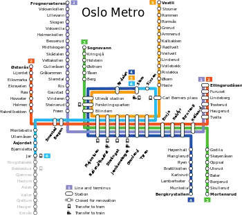 | 1 | Frognerseteren ↔ Helsfyr (↔ Ellingsrudåsen) | 34 |
