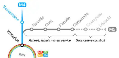 o Centenaire 🌍 (Centenaire) metrou subterană Montignies-sur-Sambre 1987 57 Construită, dar neexploatată.