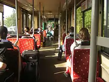 1. O broșură SNCV menționează 98 de pasageri în picioare și un raport de 4 pasageri/m2, totuși informațiile afișate în vehicule menționează o capacitate totală de 192, rezultând 148 de pasageri în picioare (192 în total – 44 pe scaune = 148 de pasageri în picioare).