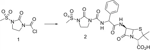 Mezlocilina este un antibiotic din clasa penicilinelor, subclasa ureidopeniciline (acil-aminopeniciline), care a fost utilizat în tratamentul unor infecții bacteriene.[9] Era utilizată pentru infecții complicate produse de bacterii Gram-negative, inclusiv cele cu Pseudomonas aeruginosa.[10] Prezintă un profil similar cu piperacilina și azlocilina.